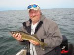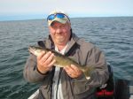 I had the opportunity to fish the IBEW again this year with my brother Doug and usually his father-in-law Jerry. Unfortunately Jerry had something come up and couldn't fish the tourney, after informing the Tourney Dir. that he could not make it, the Tourney dir. said that we should fish it anyways, thanks for thatbiggrin We headed out at 8:00 AM and first spot was off Hunters Point. We moved around there a little, anywhere from 11-14 fow, with plain red hooks with leeches. Doug boated 2 over fish at 19" right off (pic 1 & 2). I managed a 17.5" for the box. Then Doug boated a 17.75" for the box and then another over at 21.5". We then tried the rock pile off Picard Point. We boated a few "dinks", under 14", as there was a minimum size of 14" for the tourney. We tried the gravel, dragging snells too, but most of the marks on the depthfinder, showed fish that were more than likely overs. We hit Hunters again, and managed 2 more for the box. I caught 1 16.5" that swallowed my hook, in his mouth was 2' of line, with 4 sinkers and a hot pink hook right next to mine...no He broke somebody off and then I got him !!!(pic 3) With 20 minutes left, we went back out to Picard and Doug boated our final fish for the box.... a 14.5". We ended up with 5 fish out of 15 for the box. 4 over fish were caught and the rest were all slot fish, with a few "dinks" The water temp was 60' consistently. It was little wind, mostly started SE and switched to NE, then straight East.... it was switching quite a bit. We stayed dry, until the last hour or so, when the rain moved in... it was welcomed. I would encourage anybody thinking about coming up to the big lake, to do it. Find a spot, them move a little bit, we would move 50 yards and it made a difference. We caught all our fish within a half mile of the resort. We ended up weighing 5 fish for 7.89 lbs, good enough for 4th place in the tourney !!!biggrin I want to thank the IBEW for holding the tourney and also for letting us fish with you guys, even if our actual IBEW member couldn'tsmile We met the wives(pic 4) at the resort for a few cold ones and the famous Glenny Pizzabiggrin Thank god Doug took a picture of my winnings (pic 5) the picture is all I have leftdisbelief Got to chat with local celebrity Walleye fisherman Wally also (pic 6) Thanks again to the IBEW for putting on the tourney and also to George and Linda, for running a first class resort !!!biggrin See you on the water !!!