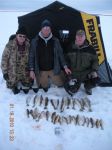 I have attached a photo from our trip yesterday. We had several trips like this one over the past week. Lots of nice walleyes and some real nice perch. We saw a few perch pushing over 14" this week. A reminder that our Perch Weekend is approaching fast. Call Hunters Point to reserve your spot with us for the weekend of March 5-7th. It will be a great weekend of fishing!