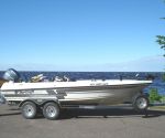 2001 Tandem axel bunk trailer with aluminum rims 2001 Yamaha F-115 4 stroke tiller Minnkota Transom 24 volt Bow mount 24 volt Minnkota with built in transducer in power head 3 bank on board battery charger 120 volt 3 Cabela’s gel batteries 6 Scotty rod holders 4 air ride chairs (2 with arms) Bow and transom trim switch Mounted on trailer spare tire with aluminum rim Boat cover Electronics locker Front and rear live well with recirculating pump, lighted Stainless and aluminum props Wave Wackers 2 rod lockers lighted and lockable Interior Lights Well maintained and always stored in heated garage $17,500 Call Bob at 651-283-0720