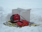 I built a dog house for mine. Its a cube that is open on one side. The generator sits inside and the opening pointed toward the S.E., just as the shacks are, away from the prevailing winds. The top also opens up to allow heat to disapate when it is not snowing. It is insultated and when it snows I close the top and cheat it back under the top a bit.