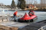 The guys were fishing around the Lakeside Reef area.  They parked their ATVs by shore on Picard Point and walked out from there.  The wind picked up during the time they were out there and opened up a crack 40+ feet wide.  They guys walked up and down the crack trying to find a place to cross, but it went as far as we could see both North and South.  They got the men and their equipment off with the hovercraft.