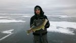Is it January or March?  With the weather and the numbers of jumbo perch, this weekend felt more like late season ice fishing.  On Friday afternoon we headed up to the North end and found a lot of other anglers with the same idea.  We kept on the move and picked up a nice mixed bag of walleyes and perch in 25-28 feet.  Most of the ice in the area was 12-13" but we did find some that was only 10".  On Saturday we carefully ventured out from the East side on snowmobile and ATVs.  We found a large crack running North and South just East of 2 mile reef.  There were some areas that were crossable on foot, but it isn't worth the risk with shifting ice conditions.  We were able to fish some of the rock piles around Lakeside Reef and South.  We did connect with some nice walleyes ranging from 21-26 inches.  The ice was 10-12" in that area.  In the afternoon we went back up North and found another nice mixed bag of fish.  There were quite a few lookers on Saturday compared to the aggressive fish we found on Friday.   Sunday was another nice day on the water.  We fished a new area along the North end in 28-29 feet and found the same steady action with mainly walleyes.  Over the deeper water we had varying ice depths of 8-12 inches.  We caught many different year classes of walleyes ranging from 5-27 inches and perch from 3-13 inches.  There are still large areas of open water and thin ice all along the East and North end.