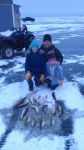 The first picture is of my brother ryan with a 27 incher caught at 2:00 am. 29 feet of water in the gravel. rattle wheel with a plain hook and fathed minnow.