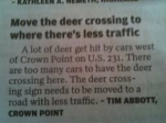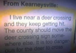 This audio clip from Y94 Fargo, ND radio station was too funny to not find a way for more people to hear it so thus, this video. A lady asks for help getting deer crossing signs moved to lower traffic areas. "The government can guide deer to lower traffic areas" ha! ha! ha! ha! ha! Kudos to Y94 Playhouse and Donna for the joy that you have been given many through laughter.