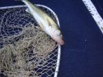 The Gremlin Rig is basically a Lindy Rig. The Snap Lock Dipsey Swivel from the Water Gremlin Co. out of White Bear Lake,MN works great with the wind on Mille Lacs, it's a snap to change the weights and get the bait to the fish. We were using the old Red Hook with two leeches to get the fish to bite.
