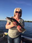 The water temp is right around 56 degrees. While the smaller fish are still clinging to shallow rocks, the larger, more well fed fish are starting to slide off to deeper water. The big wind and rain from last weekend has turned the lake over and set the stage for a good weekend for walleyes and those huge smallies.
