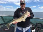 Leaches and a snell with a red hook. Drifting over the first and second breaks, we picked them up in anywhere from 8 to 27 fow.