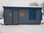 10’x20’ fish house with steel skids, shingled roof, wood sag, t&g interior